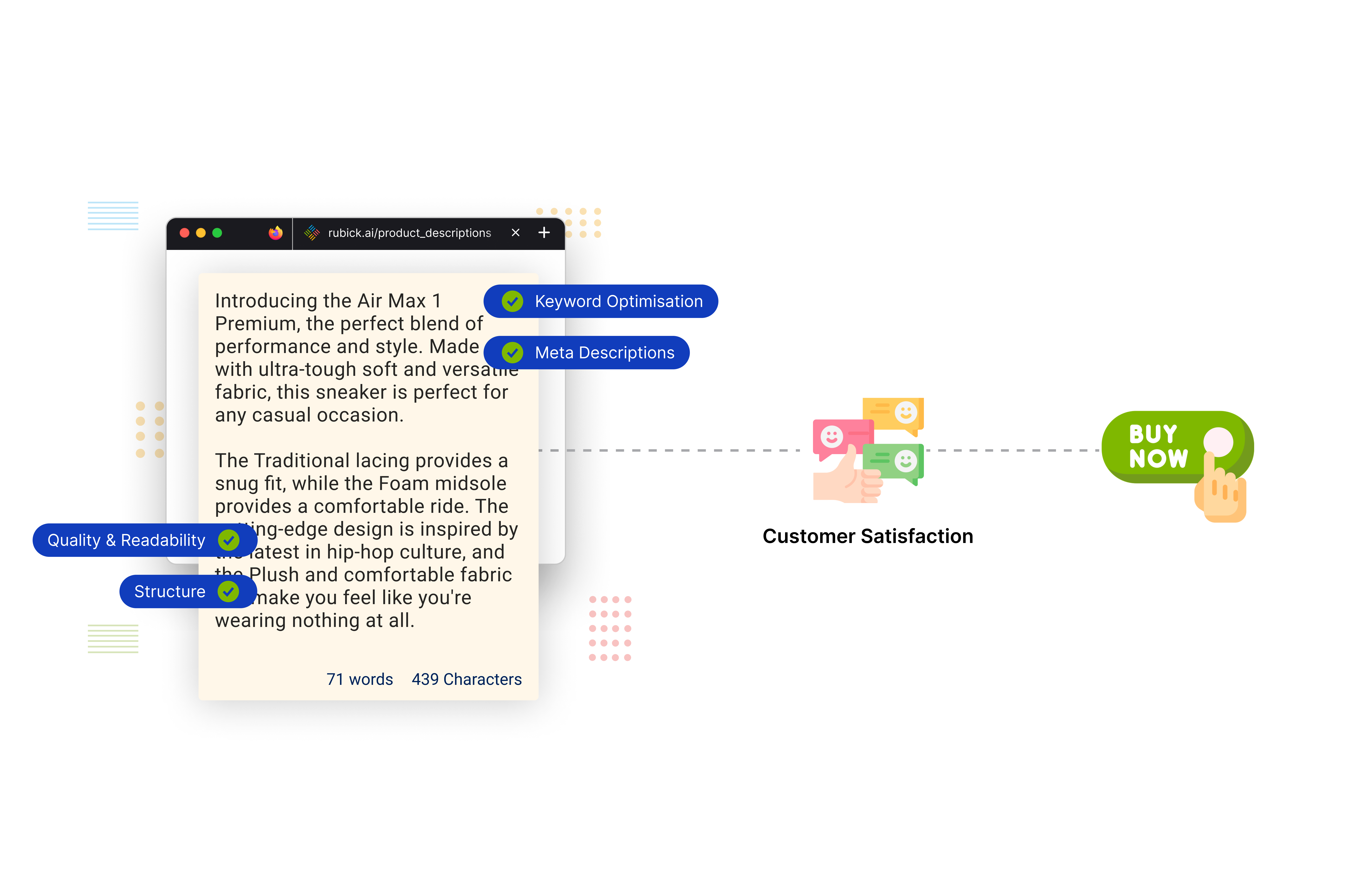 Originality is a priority for Rubick.ai’s Product Description Generator. Prioritizing authenticity, our tool utilizes its extensive training on diverse datasets to generate content that is contextually relevant and distinctly unique. This dedication avoids duplication, and it contributes significantly to the authenticity of your brand. By leveraging its comprehensive training, Rubick.ai’s Product Description Generator is a genuine reflection of your brand identity. Businesses embracing our Product Description Generator tool can confidently deliver content that stands out, resonates authentically with their audience, and establishes a distinct and trustworthy online presence.